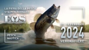 pesce che esce dall'acqua - banner di EOS, la fiera della pesca, a Veronafiere
