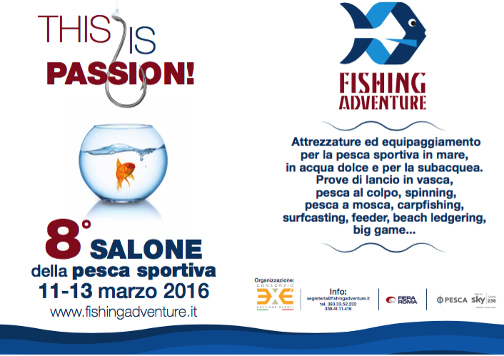 Torna a Roma l’appuntamento con la pesca sportiva dall’11 al 13 marzo 2016. Un nuovo nome per un salone fieristico storico ma completamente rinnovato ed innovativo, che si inserisce sul solco delle manifestazioni che lo hanno preceduto con successo: è la fiera Fishing Adventure, che da quest’anno sostituisce il World Fishing, ereditandone struttura organizzativa ed il complessivo impianto espositivo.