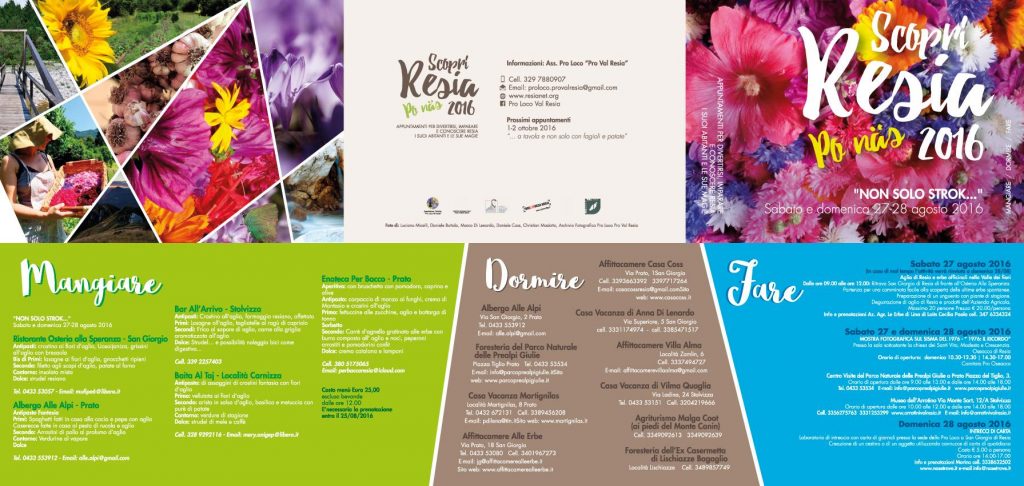 oppure telefonare allo 0433-53534 o visitare il sito della Pro Loco www.resianet.org o la pagina Facebook