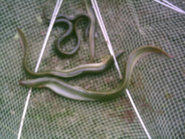 Un’altra esca buona sono le interiora di pollo, non lavate, tagliate in pezzi lunghi 7 o 8 centimetri, che vengono infilati a calza su ami a gambo lungo di n° 6-8, in modo che l’ardiglione spunti a metà dell’esca. Si possono usare come esca anche pesci morti.