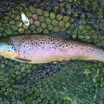 Nei corsi d’acqua così stretti e ricchi di ostacoli è fondamentale avere una canna maneggevole e pronta, molto bella. Purtroppo, i corsi d’acqua sono un po’ scarsi, ma la nostra fario l’abbiamo presa lo stesso; peccato non abbia voluto farsi fotografare dritta, ma la scomodità della riva alta si fa sentire tutta, anche avendo un guadino allungabile.